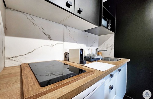 ✅ An American kitchen fully arranged and thought for your stay, with all the dishes and kitchen utensils, kettle, coffee maker, microwave, toaster, rice cooker, as well as a refrigerator and a freezer.