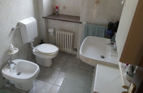The kitchen is equipped with a stovetop, a microwave, and cookware. Bathroom amenities include a hair dryer and a bidet. And because there's a dryer, you can go a bit lighter on your packing.