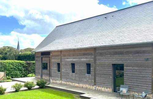 Cottage floor: open plan kitchen (microwave, oven, hob induction, dishwasher), dining living room (flat screen TV, DVD player), wood burning stove, laundry (washing machine, dryer), 1 room (3 beds 1 person 100x200cm), 1 bedroom (1 double bed 160x200cm, 1 bed 1 person 100x200cm), 1 parental bedroom with office (1 double bed 160x200cm) with shower room and adjoining wc, shower roomseparate wc. Beds made on arrival. Electric heating extra. Wood: 5€/panier. Possible cleaning: 55€. 7 Km from the sea, in an authentic clos masure, this detached house in framing lumber has a private garden closed of 1500m². With its refined decoration and terrace facing South, this cottage is an invitation to relaxation and rest.