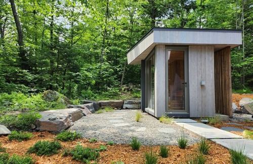 Beautiful chalet with distinctive design located in the heart of the Eastern Townships; a luxurious retreat close to all the activities in the region. Just a 2-minute walk from Lake Stukely, this peaceful haven nestled in the woods will preserve your privacy. From its sophisticated facade to its sleek interior, from the landscaped surroundings to the views immersed in the surrounding nature, from the indoors to the outdoors, every architectural detail has been carefully designed for style and function in every season.