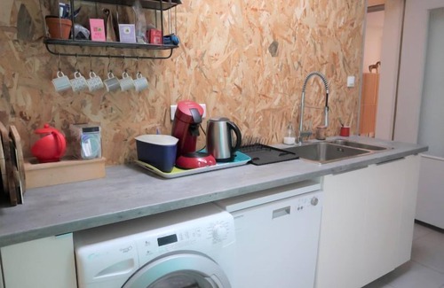 "Le Jade", 5-room house 104 m2. Comfortable and beautiful furnishings: living/dining room with Scandinavian wood stove (only for decoration), dining table and TV. Exit to the garden, to the terrace. 1 room with 1 french bed (1 x 160 cm, length 200 cm). 1 room with 1 french bed (1 x 140 cm, length 190 cm). 1 room with 1 french bed (1 x 160 cm, length 210 cm). Office. Kitchen (oven, dishwasher, 3 induction hot plates, toaster, kettle, electric coffee machine). 2 showers, sep. WC. Oil heating. Terrace 20 m2, large garden 600 m2. Terrace furniture. Facilities: washing machine. Internet (WiFi, free). Parking (1 car). Please note: non-smokers only. Maximum 1 pet/ dog allowed. Smoke alarm. Offer by a private individual according to Art. 155, IV of CGI.
