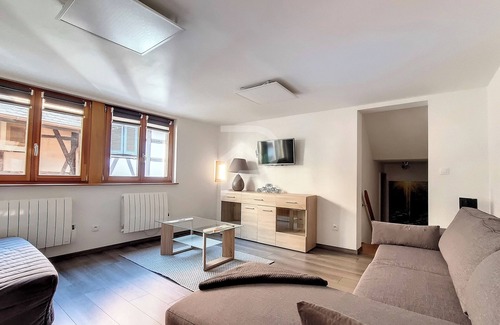 Located in the very charming village of Eguisheim, the Pain d'Épicière apartments offer functional and very comfortable accommodation. Located in a colorful Alsatian house with a half-timbered facade, they combine the original charm with a subtle contemporary renovation.