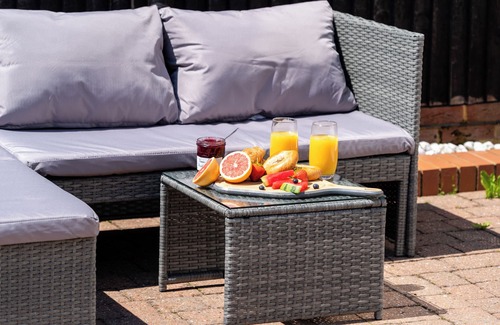 Step onto the large block paved patio and relax on the comfortable L shaped sofa with a low table, ideal for enjoying a glass of wine or a cup of tea in the fresh air. A gate provides easy access to the local shops, bars, and restaurants.