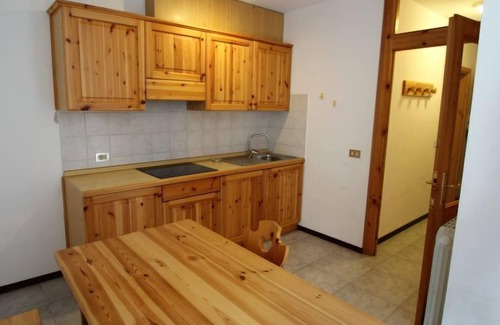 2-room apartment 33 m2. Practical and rustic furnishings: living/dining room with satellite TV. 1 room with 3 sleeping facilities. Kitchenette (4 induction hot plates). Shower/bidet/WC. Heating (extra). Heating available only from 15.10. to 15.04. Balcony or small garden. Panoramic view of the mountains. Facilities: safe, baby cot for up to 2 year olds (extra). Please note: suitable for families. Non-smoking house. Maximum 1 pet/ dog allowed. The rooms can have 3 beds or a French bed (140 cm) + single bed. IT022229A1EF3QE8MN