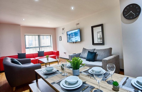The apartment is very spacious, free Wi-Fi, HD TV's in all bedrooms and living room. Situated in the heart of Liverpool's shopping district, and nightlife, with shops, bars, restaurants, Liverpool University and fantastic public transport all a stones throw away. You’ll love our apartment, because of the location of the apartment and the size. It is very comfy and modern with a bold bright colour in each room. The apartment is ideal for couples, solo adventurers, business travelers, families (with kids), and big groups.
