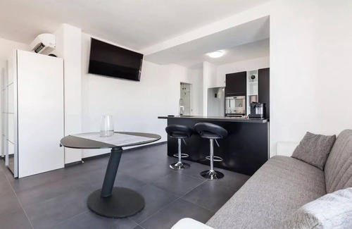 It is a delightful open space with a fully equipped kitchen, including induction hob, electric and microwave oven plus dishwasher; confortable sleeping area fitted with a double bed, spacious wardrobe and, in the living room, a sofa bed plus a full comfortable bathroom, all finely furnished. 55 "4K TV, Wi Fi connection, air conditioning and led illumimation are included.
