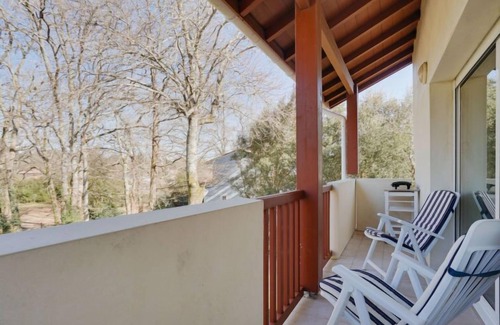 Capbreton 2 km from Hossegor: Small residence "Les écureuils". In the resort Capbreton, in a quiet position, 3 km from the sea, 3 km from the beach. Shop 2 km, grocery 2 km, supermarket 2 km, restaurant 1 km, bus stop "coeur boise" 1 km, sandy beach 3 km. Golf course (18 hole) 1 km, cycle lane 100 m. Groups of teenagers on request only.