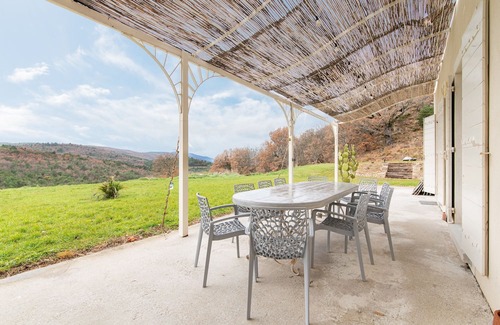 Cocoonr/Bookandpay offers this charming 260 m² air-conditioned house with mountain views and swimming pool for rent in Montfuron. It can accommodate up to 10 guests. It comprises an attractive 80 m² living room (with fireplace), a fully-equipped kitchen, five bedrooms, four bathrooms and a garden of around 14,000 m². We're waiting for you!