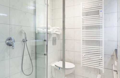 the bathroom has a walk-in shower, a hairdryer and a straightener are available,