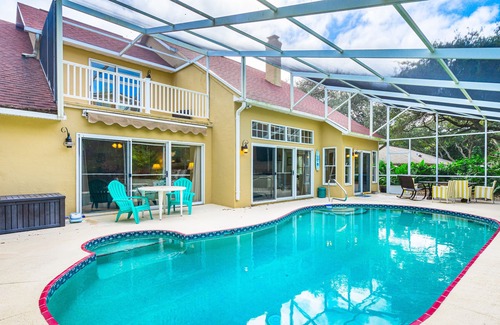 Step into your private backyard oasis to soak in the Florida sun! The glistening pool waters are surrounded by a paved deck. The deck is surrounded by lush, natural Florida foliage and fencing which allows for complete privacy while you enjoy your fun in the sun. Please note that the weather is warm here nearly year-round and just like the majority of pools in the area, this pool is not heated. Spend your days lounging pool-side in the ample lounge furniture and outdoor dining set. No need to stop the pool day fun when tummies start to growl. The home includes a grill and utensils to prepare your favorite grilled foods.