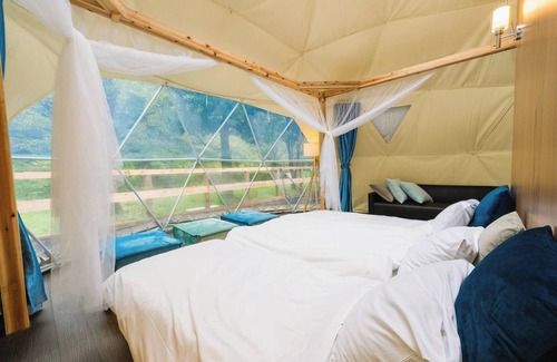 Equipped with BBQ facilities and natural hot springs even beginners can enjoy the outdoors with ease In addition there are activities to enjoy the great outdoors in the surrounding area / The dome side is equipped with a semiopenair bath and a separate toilet so even women new to the outdoors and children can relax and enjoy a luxurious time