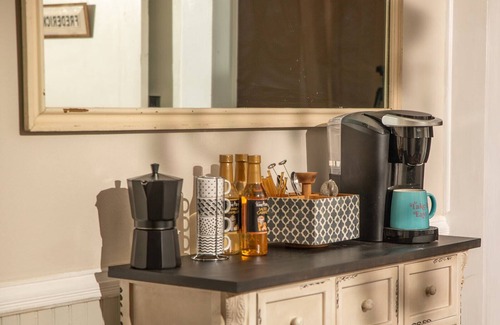 Sleeps 6: 2 Bedrooms-1 king bed, 2 twin beds, Queen sleeper sofa, 2 covered porches, private back yard with fire pit & patio. Coffee/Tea bar & Coffee Nook, WIFI, ROKU, Full Kitchen, Located 2 blocks off of Main St. Great place to relax and reconnect! Ready to welcome you!