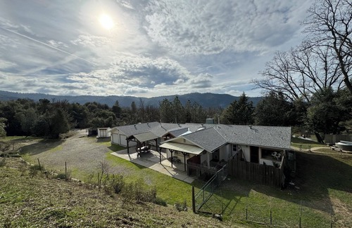 A perfect cozy home for family vacations or getaways w/ friends. Home is on a 1.3 acre property, with 3 cozy bedrooms, 2 full baths, and additional office space comfortably sleeps up to 13 guests. The additional office space provides extra comfort for those who need to catchup on work or simply lounge around. A gorgeous wood bar. Game room in garage w/ TV, pool table, darts, skeeball and air hockey table/ ping pong table. Multiple patios to enjoy your meals outside w/ the relaxing sounds of nature. Unwind in the pool and spa. Located 11 mi to Bass Lake, 11 mi to Chuckansi Casino, 4 mi to shops and restaurants, 20 mi to Yosemite South Entrance. Step inside our cozy home featuring an open floor plan. Home is very spacious and includes everything you need. This 3 bed, 2 bath home has enough beds to sleep up to 13 guests.