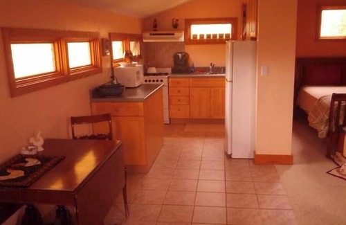 Queen bed with twin pull out, full kitchen, bath with shower; Large outdoor deck. Fresh farm products available for purchase to cook up great meals! We will get you started with a dozen eggs and some breakfast sausage.