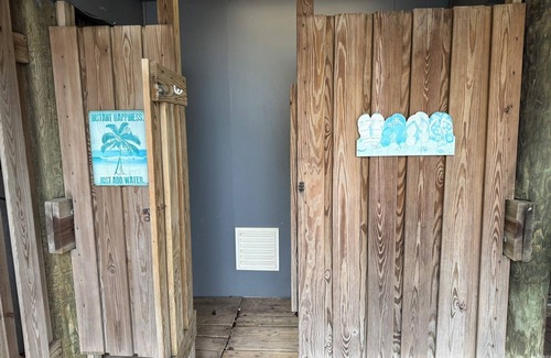 When entering the first level of this property you will find your own private garage perfect to keep your beach or fishing gear along with a private fully fenced in backyard complete with an outdoor shower, a Weber BBQ (2025 Model), a picnic table, and four Adirondack chairs.