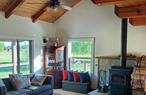 Entire home to yourselves. 2 floors plus partially finished basement. This location also offers great access to all of the hiking trails in the Bitterroots. After a long hike or day on the river, relax in the infrared sauna downstairs. This home makes a great spot for a family to vacation as well with a sandbox, slide, and crib.