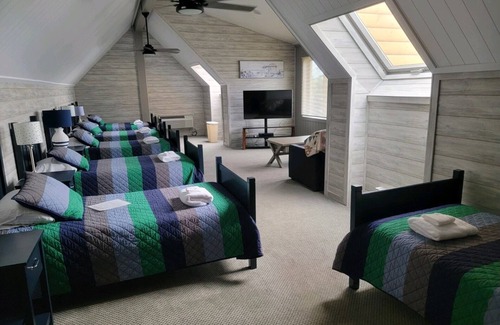 The master suite features a fireplace, private sunroom with and poker table. Master bathroom features clawfoot bathtub, custom walk- in shower, his and her vanities. Sunset Lodge also has satellite flat-screen TV's in the bedrooms, sound system with a CD player, DVD players, satellite internet service and unlimited long distance phone service. An pier, 6 new kayaks, trampoline, picnic tables, grills , an outdoor firepit enhance your outdoor fun and 100s+ miles of UTV/ATV Trails.
