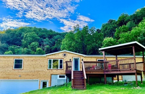 Longview Lodge is a 2 story 4 bdrm 2.5 bath log home just outside of Harper's Ferry with a new Fishing Pond that we are finishing. Home is 1800 sq ft with a covered porch, private rear deck and covered outdoor Hot Tub, new swimming pond coming in April 2023.