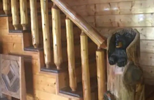 Enjoy a fun and relaxing time on your own mountain top. Bring the kids and PETS to meet the carved bears and Labradors! The emphasis is on fun not fancy! The first floor provides a living room with TV, kitchen, laundry room and full bath. The second floor provides 2 bedrooms and bath. The 3rd floor is open with a TV, Jacuzzi, balcony, and bath. Use whatever you like and enjoy yourself! Walk in the woods one day, go canoeing and fishing at nearby resorts, then visit Silver Dollar City and Branson.