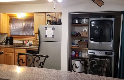The village of Chama New Mexico, one of the last remaining authentic mountain towns in the West. Set up your vacation base camp in this beautiful and functional 3BR/2BA log sided home. Nestled under tall pine trees, our remodeled home contains hard wood flooring throughout three furnished bedrooms, two bathrooms, living/dining area, and a fully stocked kitchen. A large paved driveway and private back yard provides plenty of options for outdoor entertaining/dining and plenty of parking and storage. Additional amenities include; washer/dryer, large flat screen TVs with satellite cable/dvd, outdoor BBQ grill and cooking area, fire pit, and a covered deck.