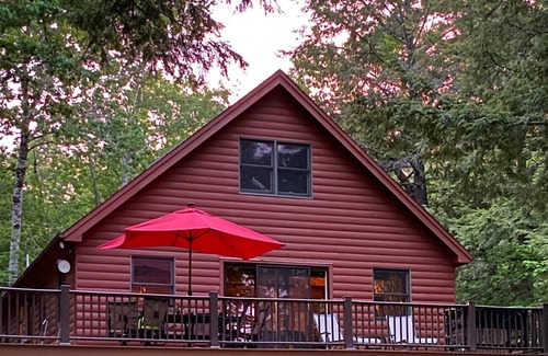 Watch the sunrise from the deck or the dock. Great location, quick boat ride to Belgrade Village which has Day's store, fuel, deli, pizza, post office, and an ice cream. This home has an open concept. The downstairs has two bedrooms each with a queen bed. One bathroom with shower stall. The upstairs has one loft and 1 bedroom. The loft has 2 full beds and 3 twins and the upstairs bedroom has 2 twin beds. Sheets and towels are not provided. There are privacy dividers partially separating the loft. There are also plenty of movies to watch on the flatscreen during downtime. The home is surrounded by two vacant wooded lots making it very private, offering 300’ of waterfront frontage. The home includes a large dock with swim ladder, plenty of fishing poles, firepit, a hammock on the water, picnic table, deck furniture with lounge chairs, noodles, rafts, plenty of board games, outdoor games, etc. Waking trails within a five minute drive with beautiful views. Kitchen has microwave, toaster, coffee maker, Keurig coffee maker as well, juicer, blender, etc. This home has a wrap around composite deck.