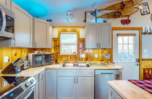 This location is perfect for summer and winter activities alike, with ski resorts nearby and a boat ramp nearby for lake activities, so take the kayaks and lifejackets provided out for adventure. A swim dock is also available. Gather around the firepit at the end of the day to roast marshmallows and tell stories while witnessing cotton candy-colored skies while the sun sets.