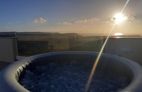 Kick back and relax in this calm, stylish space. We offer a highly finished penthouse with private roof top terrace for rent in Mellieha, furnished with love and care, next to the most beautiful Bays of the Island (Ghadira Bay, Paradise Bay, Gozo Ferries and Comino). The PH has a living room/kitchen and a large terrace with unobstructed views stretching all the way up to Golden Bay. Hot tub to die for in the top terrace. 1 double bedroom, 1 Sofa bed, 2 bathrooms, with air condition, wi-fi, smart TV.