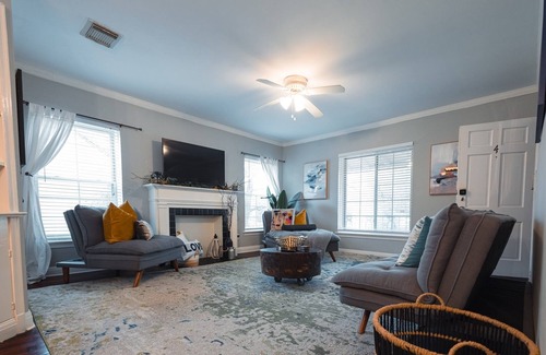 This upstairs unit is one of four units in our classic four-plex property, located in the heart of Houston that includes 1 queen bed as well as a convertible sofa and convertible lounge chair offering beds for up to 5 guests.