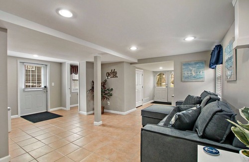 This home invites families and groups of friends alike, with sleeping accommodations for plenty (up to 12 guests). The well-equipped kitchen and welcoming living spaces will have you settled in in no time, not to mention the great outdoor amenities including a waterside firepit.