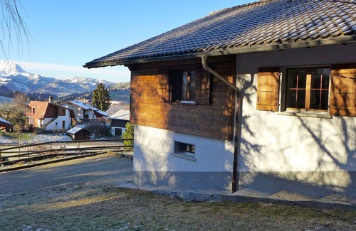 Charmey: Beautiful, rustic chalet "Clairval", 887 m a.s.l 3 storeys, surrounded by trees and meadows. In the resort. Private: large garden (fenced). In the house: storage room for bicycles, storage room for skis. Parking (for 5 cars), single garage. Parking space or garage only for small to medium-sized cars. Supermarket 700 m, restaurant 500 m, bus stop "Corbettaz" 700 m, outdoor swimming pool, indoor swimming pool 650 m, thermal baths "Les Bains de la Gruyère" 350 m. Tennis 650 m, minigolf 600 m, sports centre 650 m, walking paths from the house 1 m, cable car 1 km, ski rental 900 m, cross country ski track 1.5 km, ice field 1.5 km. Nearby attractions: Château de Gruyère 12 km, Maison Cailler 6.6 km, Bulle 11 km, Les Gorges de la Jogne, Gstaad 48 km, Montreux 48 km. Well-known ski regions can easily be reached: Charmey 1 km, Moléson 16 km. Well-known lakes can easily be reached: Lac de Gruyère. Hiking paths: Charmey 1 km, Moleson 16 km. Please note: car recommended.