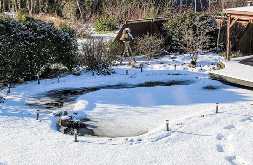 The property you will be staying in is called "Teichblick," and it is ideal for a vacation. The apartment can accommodate up to two people, as it has one bedroom and one bathroom. No information is provided regarding the maximum number of pets or dogs allowed.