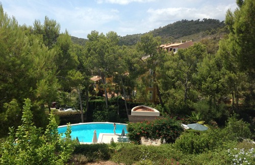 Apartment Info: Spacious, sunny, west-facing terrace with lovely view of pools and forested hills in distance (accessed off the living area via lockable doors) has dining furniture for 4 & 2 loungers. Beautiful shared gardens, an adult and separate children's pool, with loungers & parasols. Pools maintained daily. Shower and toilet facilities adjoin the pools. Allocated parking space.