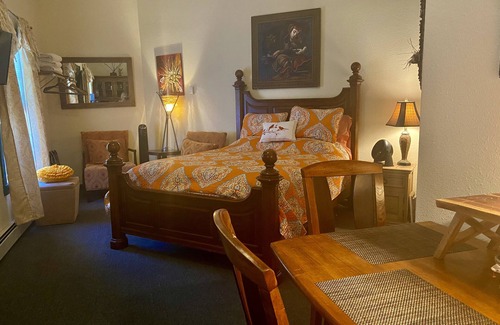 Lovely self contained Queen studio with cooking facilities , bathroom, bathrobes , sitting area and dining area. 5mn from town yet feels like the country at the base of Rabbit Peak on 4 scenic acres. Ride the CumbresToltec steam train
