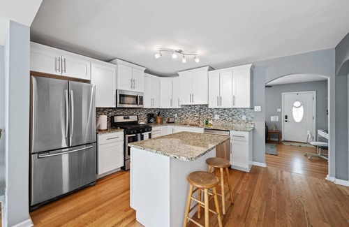 This charming vacation rental offers a comfortable space for your family or group trip to St. Louis, featuring two queen bedrooms.
