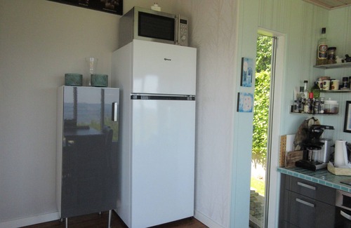 Lovely holiday house with a private path leading directly to the beach. The property holds two separate houses, making it the perfect place for two families wishing to spend their holidays together, while still living separately. Both houses contain a full kitchen, bath, and toilet. The property is enclosed and has a panorama view overlooking the Limfjord. One house has two rooms; one with a double bed and one with a family bunk bed. The second house has a room with a double bed and a charming bed-loft with four good mattresses. This holiday house is located perfectly in nature, while still being close to the town.