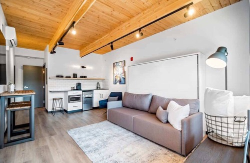 Welcome to your modern retreat in the heart of Spokane’s Kendall Yards! This brand-new studio loft is directly connected to Uprise Brewery and just steps from shopping, dining, and the scenic Centennial Trail. With designer touches and local flair, it’s the perfect stay for solo travelers, couples, or business guests.
