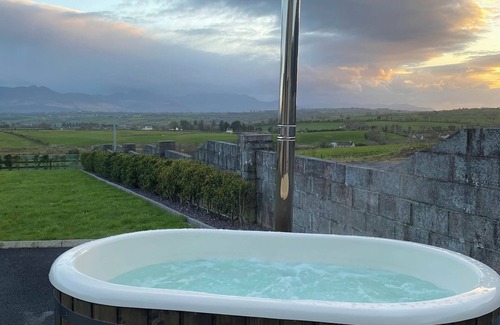 Studio apartment, with double bed and can also add two camp beds for families that want to stay together. 7 minute drive (or 25 minute cycle) to Killarney town. Enjoy your morning coffee or tea while looking at the beautiful McGillycuddy Reeks. We've got a hot tub outside(for additional charge of €50/night on request) to enjoy while watching the sunset over the beautiful mountains. Perfect for a couple or a family with 2 parents, 2 kids upon request. Lovely, quiet countryside location.