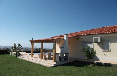 Our house " Casa dos Pinheiros", completed in Summer 2006, is a modern, air-conditioned single-storey villa in true Portuguese style. Set on top of a hill with excellent views of the medieval town of Obidos, the sea and the world’s largest natural lagoon leading to the sea. The house is situated in the lovely village of Capeleria only 45 minutes drive from the airport at Lisbon. Fully air-conditioned/heated. The house has four bedrooms which sleep eight comfortably, including a cot and high chair for the little ones. Two bathrooms, one en-suite and one with a bath & shower. With a living accommodation comprising a lounge, dining area, kitchen with breakfast bar and utility room along with a 12m x 5m heated infinity swimming pool and large terrace with BBQ. Set in 6500 square meters of gardens and orchard with peach and plum trees. Perfect for families and friends, peaceful amidst spectacular panoramic views, 10 mins drive to beaches, 15 min walk or 5 min drive from medieval World Heritage walled town & castle of Obidos with annual Christmas, Medieval, chocolate and opera festivals, fado & tapas bars, 'Pingo Doce' supermarket and public indoor swimming pool. Villa extremely well equipped, table footie, basketball net, SKY, DVD player, Freesat TV/radio, WIFI, BBQ etc.. a truly stunning property.