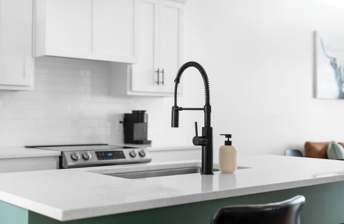 The Master bedroom offers floor-to-ceiling windows and direct deck access with the same stunning lake views. Additionally, there is a TV, spacious king bed and pack-n-play for your convenience. The on-suite bathroom provides natural light and comes fully stocked with shampoo, conditioner, body wash and a hair dryer.
