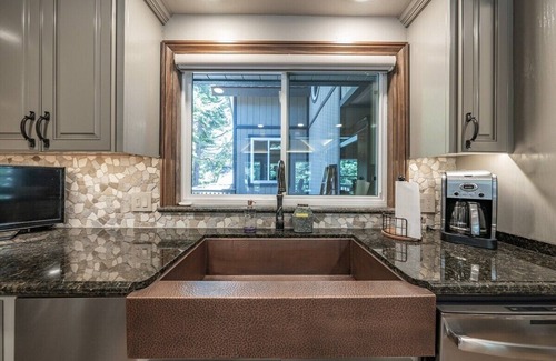 A washer and dryer in the cabin are perfect for soggy ski clothes or beach towels. Entertainment options like flat-screen TVs mean you can cozy up with a good movie next to the wood-burning fireplace! Enjoy the deck with table and chairs in the summertime, with a good cup of joe in hand (complimentary selection of coffee and hot cocoa are offered, of course).