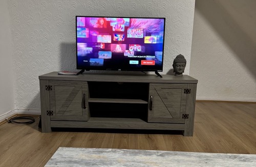 Look no further, this spacious comfortable property offers everything you need. King sized bed with a fully equipped kitchen. Longer stays? No need to worry as on site there is a washing machine and a dryer, not forgetting the fabric softners and cleaners thast are availible to all guests. Tea, Coffee and Sugar are at hand along with a dining table to eat at. Full smart TV.