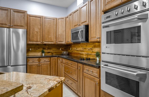 This single family home was custom built in 2013 and offers two en suite bedrooms on two separate corners of the home, plus two additional bedrooms on the other side sharing a full bath between. The home also has a 1/2 bath off the pool. Solid surface ceramic tile floor in the main areas and genuine bamboo flooring in the bedrooms make for sanitary living. Mattresses are from the Marriott Hotel Collection. The Master Bedroom features a beautiful King Bedroom Set with tall headboard in white wood; The other en suite offers a queen bed and the other two both have kings. This home is great for a large family or traveling couples to have plenty of privacy and comfort. We have the highest speed wifi available so even great for corporate retreats or gamers who want to bring their preferred console. A karaoke speaker and mike is on hand for those who want to bring out their inner rockstar, or just to have some family fun with the kiddos.