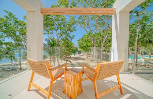 Welcome to Coral Townhouse 4! Embrace the ultimate beachfront lifestyle in this Watercolors Townhome. This stunning 3-bedroom retreat spans three levels accessed by stairs, offering breathtaking Caribbean Sea views from its expansive balconies. Enjoy seamless indoor-outdoor living on the first level with a fully equipped kitchen with pantry, half bath, serene bedrooms on the second level all with king beds, and with their ensuite bathrooms, and a private third-bedroom with independent access on the third levelequipped with a kitchenette and comfy king bed overlooking the Caribbean sea.