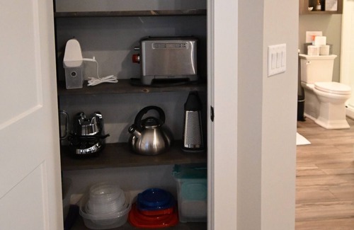 KITCHEN: Fully equipped, dishware & utensils, spices, Keurig and drip coffeemaker, 3-seat breakfast bar