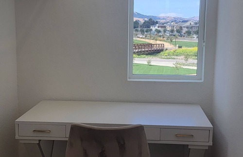 A-new single-family home with open floor plan. Lower-level bedroom with walking closet and attached bathroom. 2nd level kitchen and living room and half bathroom. 3rd floor includes Master bedroom with attached bathroom as well as 2 extra bedrooms/1 full bathroom. Ideal for families and/or traveler groups with many local restaurants, gyms, grocery markets and nearby shopping malls. Conveniently located near BART (walking distance) for transportation throughout the Bay Area. The property has 2 exterior security cameras (Front door & Garage)