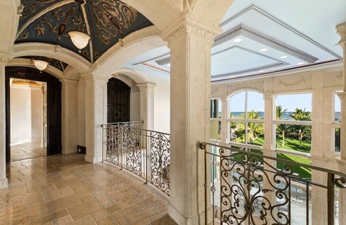 Welcome to a Mediterranean, medieval-style 5 bed, 7 bath, oceanfront mansion, your dream rental castle! Enjoy a 4-car garage, driveway for 6, gym, theater room with pool table, and ensuite bedroom on the first floor. The second floor features a formal living room, chef’s kitchen, dining, and family rooms. Upstairs, find two ensuite bedrooms and a master suite with rooftop access. Outside: pool with slide, swim-up bar, lounge areas, and direct beach access.