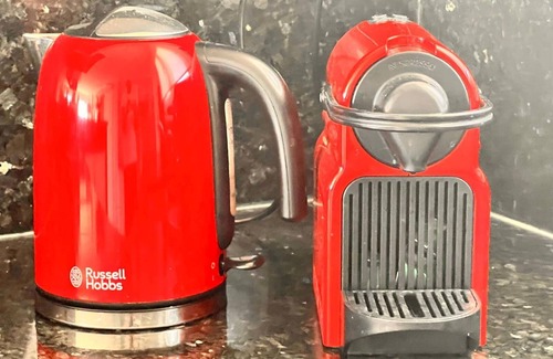 The modern open kitchen is perfectly equipped with 2 fridges, one with freezer compartment, stove, oven, microwave, dishwasher, kettle, nespresso machine, mixer, all necessary utensils).