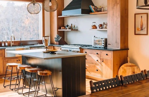 Eagle Star Lodge is perfect for large families, groups and company retreats. Sleeps up to 20 guests. Enjoy modern amenities without compromising the rustic cabin vibes and breathtaking forest views. Enjoy 20 foot vaulted living room ceiling, full kitchen with luxury appliances, ample natural light, a game room, hot tub, pond, pool, and volleyball court. Pool open from May 7 to Labor Day weekend. 7 min drive from all the conveniences of town. Many outdoor activities located nearby.