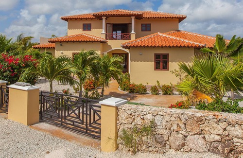 Casa Presioso is a beautiful two-story house on a private cul-de-sac in Santa Barbara on the island of Bonaire in the Dutch Caribbean (former Netherlands Antilles). Being built on the hill, it has a spectacular free panoramic view overlooking the ocean, Kralendijk and the islet Klein Bonaire.