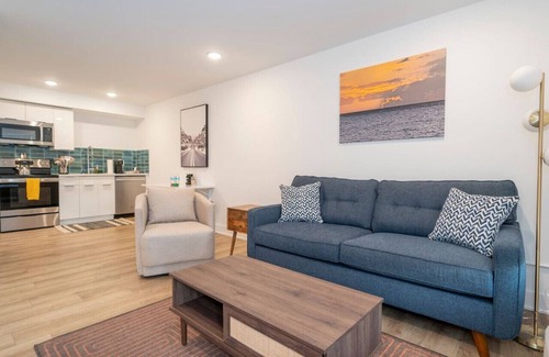 The condo is equipped with a TV, Wifi, air conditioning, and a fully stocked kitchen. You'll also have access to free parking on the premises, a washer and dryer, and a laptop-friendly workspace.